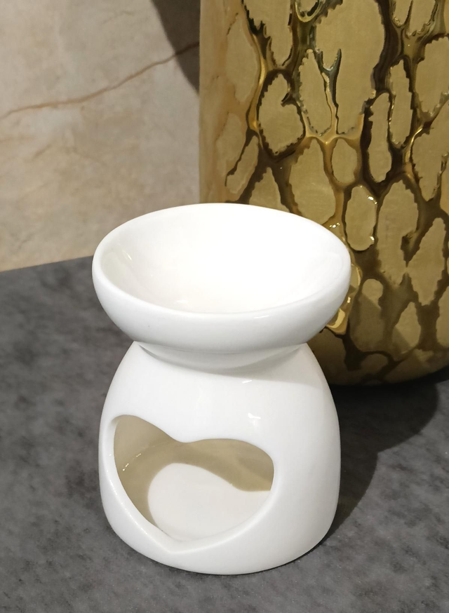 **Brûle parfum blanc thème coeur en céramique. A utiliser avec les fondants en vente sur la boutique dans la section fondants parfumés