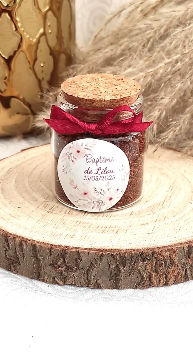 Je vous propose ces flacons vides à remplir de thé/bonbons etc... Parfaits pour laisser un souvenir original à vos invités, ils agrémenteront également votre décoration de table pour tous vos évènements. Pour commander suivez les instructions en photo !!