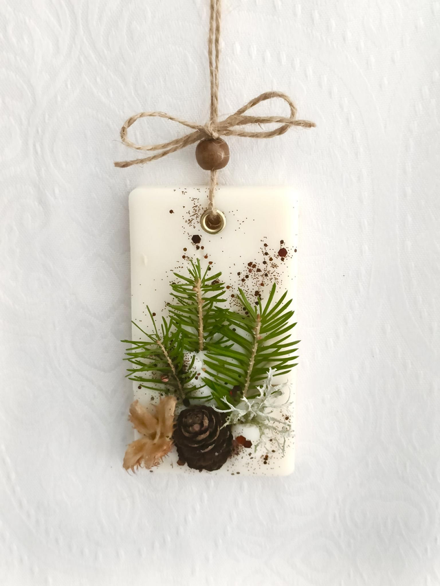 Suspension parfumée décorée minutieusement à la main avec des éléments naturels. Profites de la senteur de cette suspension dans tes penderies, armoires ou tout autre endroit de ta maison. 40g. Dimensions 10cm x 10cm ou 8cm x 10cm