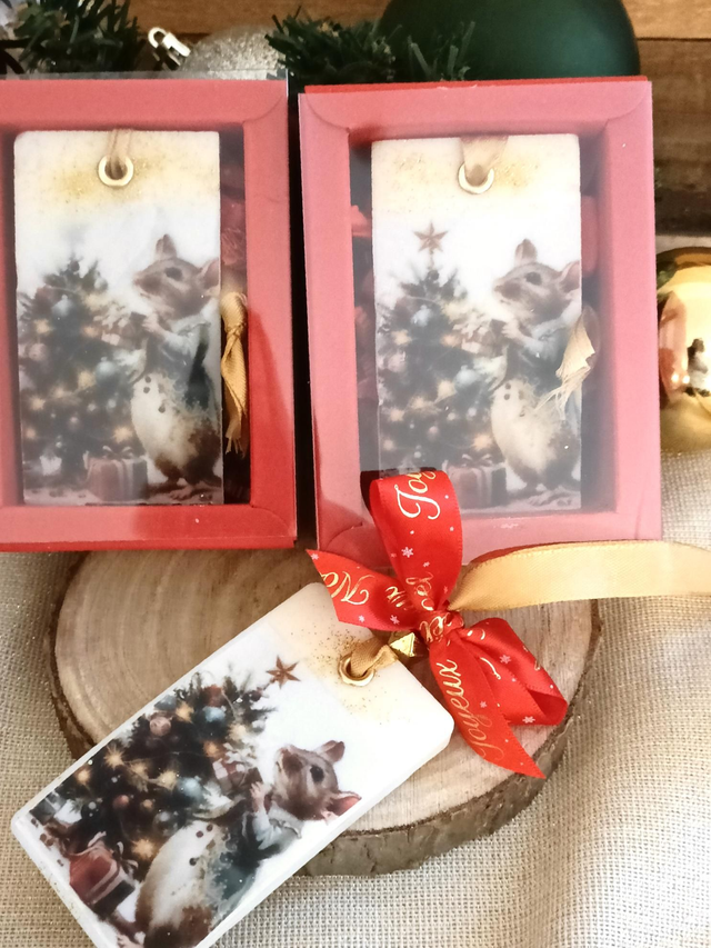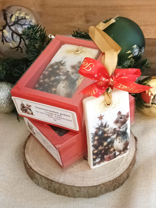 Suspension parfumée de Noël avec incrustation d image style vintage. Profitez de la senteur "la magie de Noël" de cette suspension dans votre sapin, armoires ou tout autre endroit de votre maison. environ 35g. 8cm x 10cm
